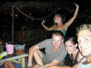 Though we planned on spending a few days of beach time, Jared, Joanna and I – along with newfound friends Matt and Siobhan from Australia – ended up there eight days. We joked that the island air evaporated any incentive to actually do anything, and caught in the clutches of our laziness we developed a lovely routine. We would rouse ourselves in the late morning and hike through the forest to Viking beach, where we would spend the rest of the day sprawled on the sand or playing with the beach’s two golden retriever puppies. We would then hike back to our bungalows (Golden Hill Bungalows, about a 40 minute walk from Viking Beach) pre-mosquito feeding time (aka dusk) and shower, and then congregate outside the 7/11 at 8pm sharp for dinner. More often than not, we ended up at Papaya restaurant, where the massaman curry was spectacular. We would move from there to an outside bar in front of the 7/11 and then go to Tiger Bar for the midnight “free bucket run”** – I suppose they assume the drunker they get you, the more you will buy afterward? – and then to Rolling Stoned, where a cover band performed anything from Zepplin to Rage to Nirvana. Finally, we’d make our way to Apache beach bar and dance on the beach until the music wound down.