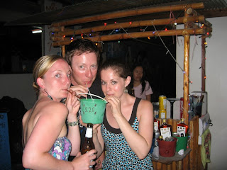 ** For those of you uninitiated to buckets, they are exactly as they sound: a plastic bucket full of alcohol and soda and red bull. Our weapon of choice was also the cheapest: a full mickey of Sangsom (Thai Whiskey), a bottle of red bull and a can of diet coke. Ugh.